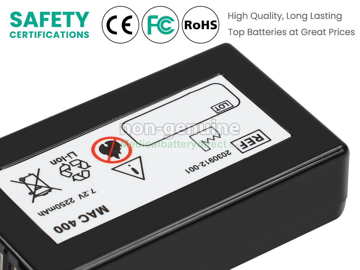 A: Yes, it’s 100% compatible. All our batteries are engineered and tested to meet strict performance and safety standards, ensuring reliable operation and full compatibility with the original device. Connector type, voltage and capacity are matched to GE’ original specifications. For the GE MAC C3, please check the model label on your original battery, as well as the connector type and voltage, and compare them with the specifications shown on this page. If you’re uncertain, simply send us your device model number or a clear photo of your original battery label. Our support team will confirm compatibility for you before you place your order.