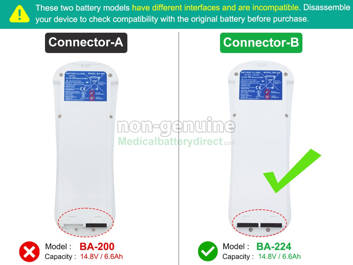 A: Yes, it’s 100% compatible. All our batteries are engineered and tested to meet strict performance and safety standards, ensuring reliable operation and full compatibility with the original device. Connector type, voltage and capacity are matched to Inogen’ original specifications. For the Inogen IO-200, please check the model label on your original battery, as well as the connector type and voltage, and compare them with the specifications shown on this page. If you’re uncertain, simply send us your device model number or a clear photo of your original battery label. Our support team will confirm compatibility for you before you place your order.