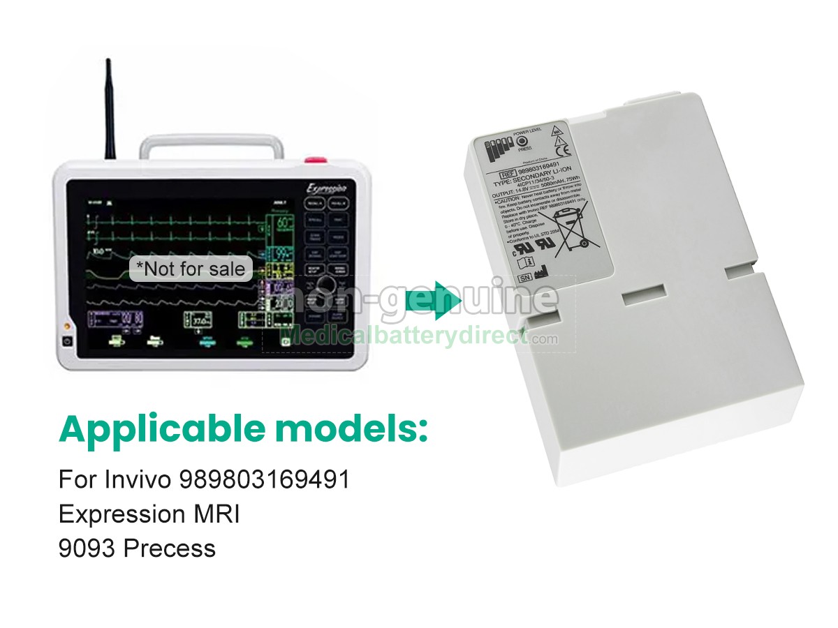 A: Yes, it’s 100% compatible. All our batteries are engineered and tested to meet strict performance and safety standards, ensuring reliable operation and full compatibility with the original device. Connector type, voltage and capacity are matched to Invivo’ original specifications. For the Invivo 9093 PRECESS, please check the model label on your original battery, as well as the connector type and voltage, and compare them with the specifications shown on this page. If you’re uncertain, simply send us your device model number or a clear photo of your original battery label. Our support team will confirm compatibility for you before you place your order.
