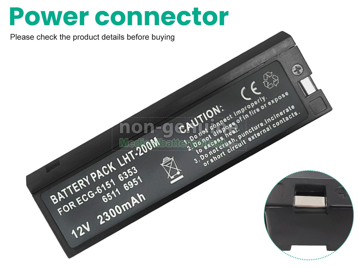 A: Yes, it’s 100% compatible. All our batteries are engineered and tested to meet strict performance and safety standards, ensuring reliable operation and full compatibility with the original device. Connector type, voltage and capacity are matched to Nihon Kohden’ original specifications. For the Nihon Kohden ECG-6851K, please check the model label on your original battery, as well as the connector type and voltage, and compare them with the specifications shown on this page. If you’re uncertain, simply send us your device model number or a clear photo of your original battery label. Our support team will confirm compatibility for you before you place your order.
