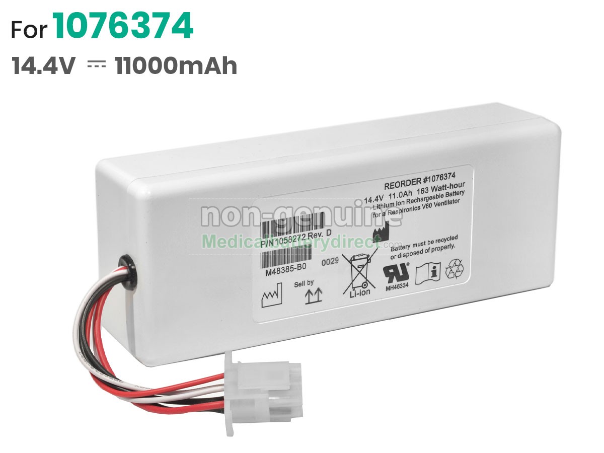 A: Yes, it’s 100% compatible. All our batteries are engineered and tested to meet strict performance and safety standards, ensuring reliable operation and full compatibility with the original device. Connector type, voltage and capacity are matched to Philips’ original specifications. For the Philips RESPIRONICS V60, please check the model label on your original battery, as well as the connector type and voltage, and compare them with the specifications shown on this page. If you’re uncertain, simply send us your device model number or a clear photo of your original battery label. Our support team will confirm compatibility for you before you place your order.